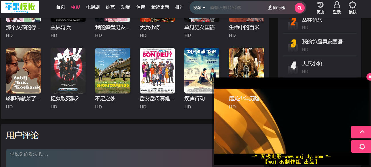 经典黑色大气设计,播放器可跟随移动,用户体验极佳!推荐模板。