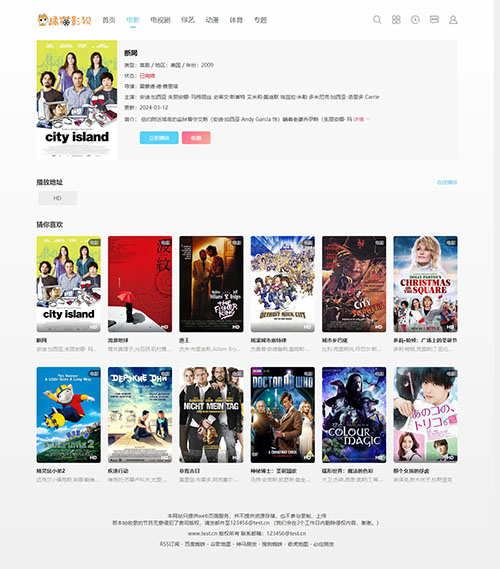 经典白色简约设计,去除了无关信息,版面最大化留白,凸显内容,很适合于影视网站,支持pc及wap自适应访问,推荐模板!
