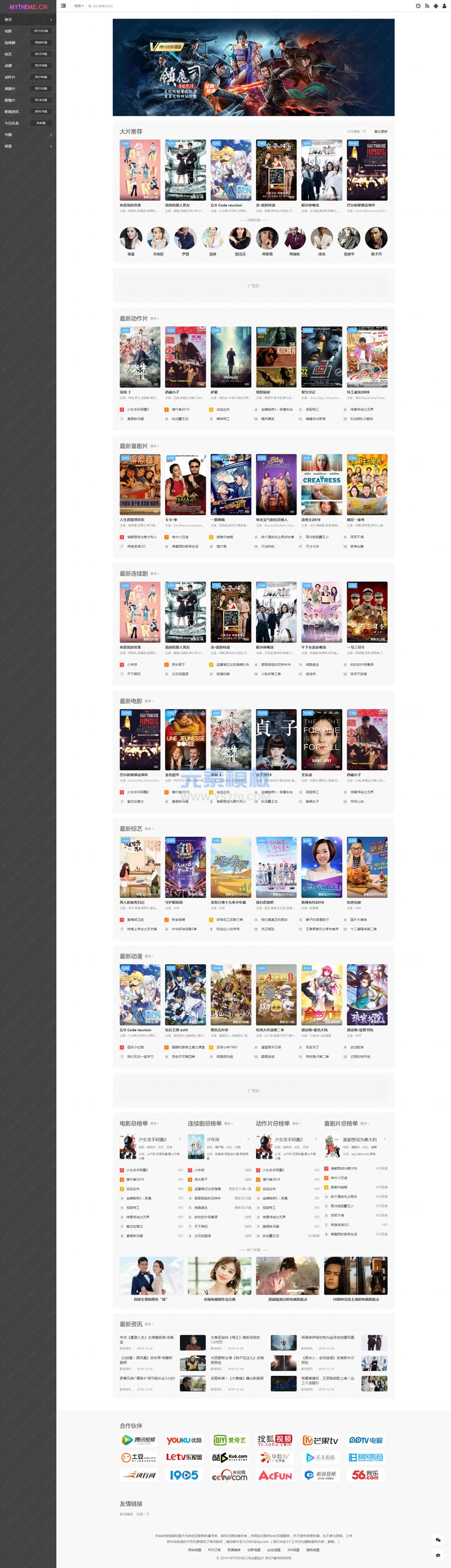 首涂第二十四套带后台和迅雷下载的侧栏样式苹果CMSv10模板,可以拿来做下载站的经典侧栏样式!弱化播放列表、4个皮肤风格、自定义幻灯,包含了会员、专题、资讯、明星、评论、下载、剧情、留言页面等样式及全部功能!