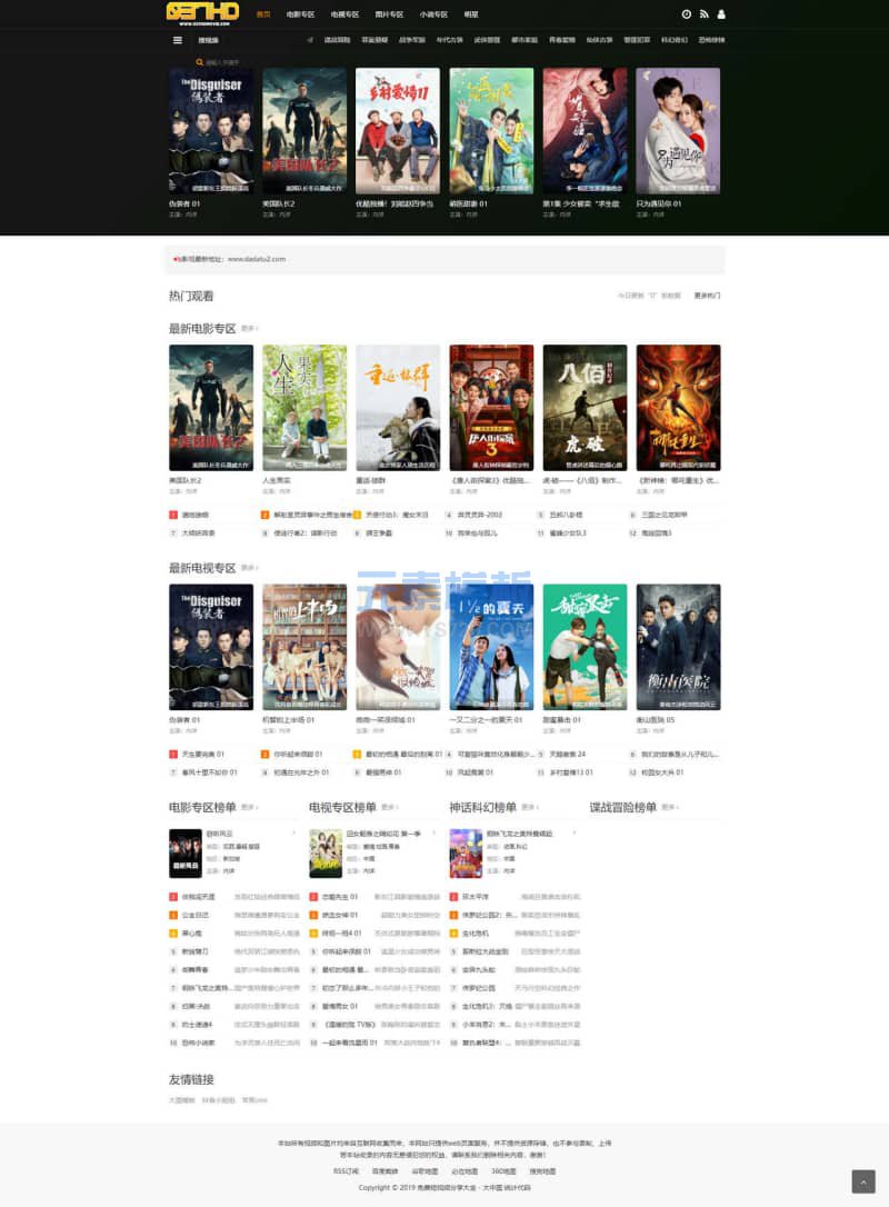 模板支持:首页、分类、筛选、详情、播放页、会员中心、历史记录、热门单榜页