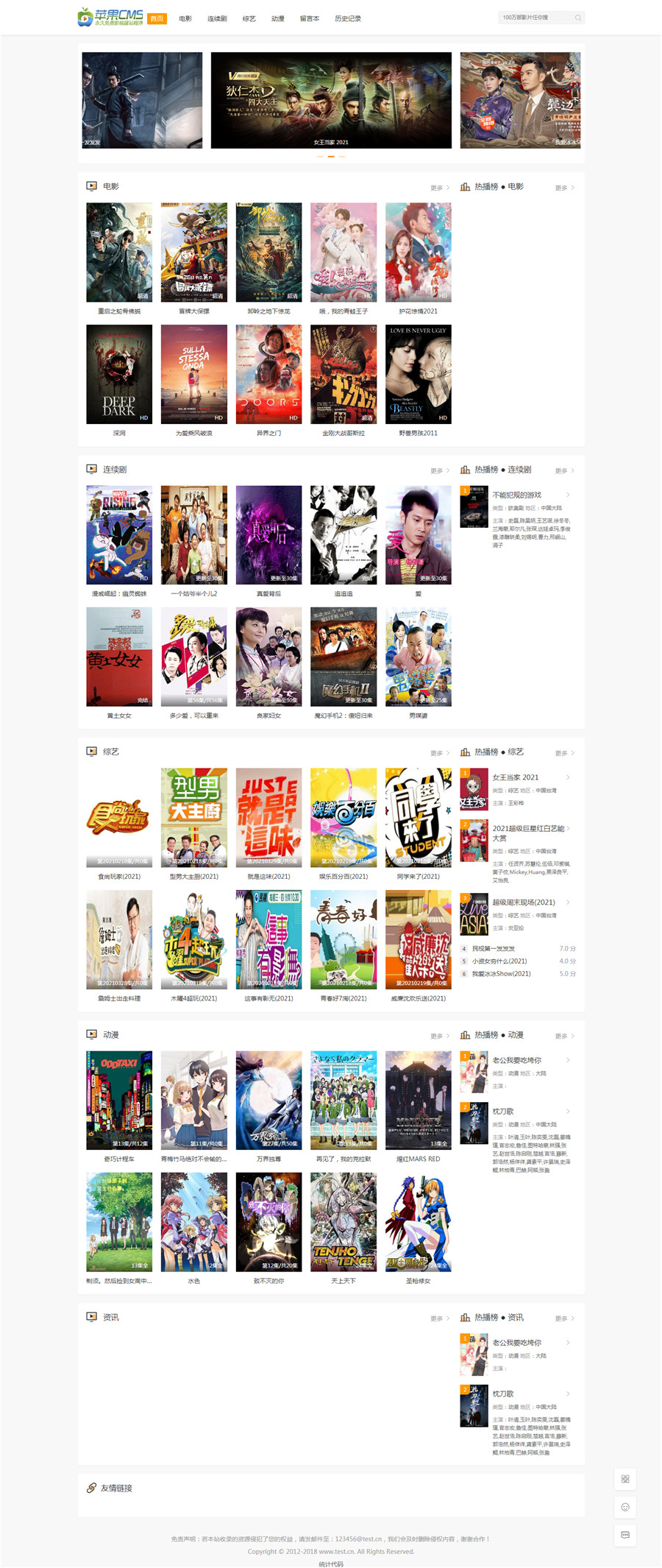 | 苹果CMS模板简介: 苹果CMS仿腾云网主题模板,自适应手机端,V10版本,免费分享。 已测试,没有大问题,但是风格非常简洁,和官方原版差不多,只是小改动。 |