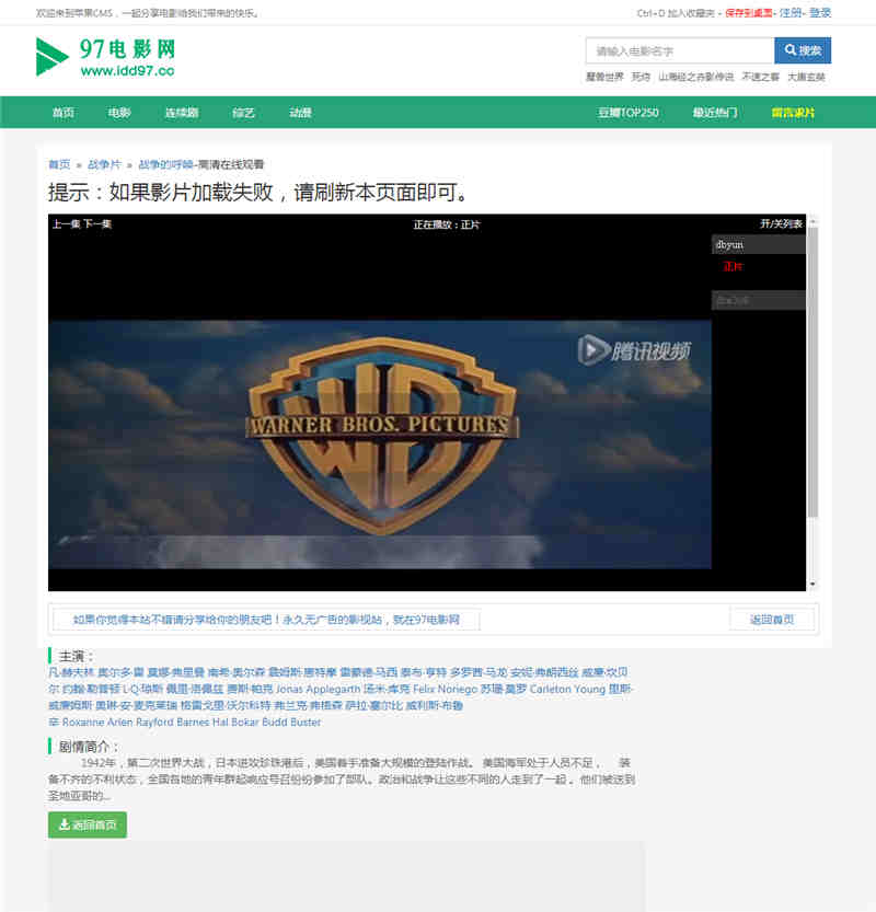 只有电脑端,不自适应手机端。模板只包含首页、列表、内容页、播放页。