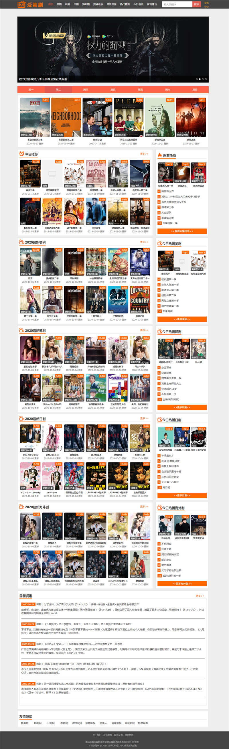 海洋CMS最新仿爱美剧网站模板,为庆祝海洋CMS回归,特分享自用海洋cms模板一套。自适应手机端,内含 视频 资讯 留言模块。