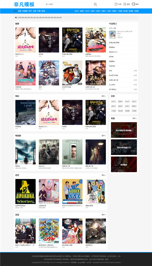 网络收集的非凡模板第17版海洋cms模板,蓝色风格自适应手机端,已测试完美无错,上面为演示测试图。